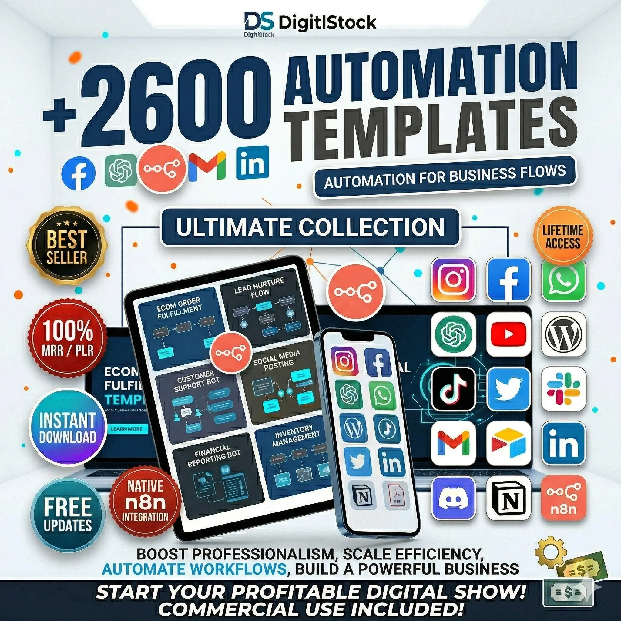 وفّر ساعات لا تُحصى من خلال أتمتة المهام المتكررة في جميع أنحاء مؤسستك. تساعدك هذه القوالب على زيادة الإنتاجية، وتقليل الأخطاء البشرية، وتوسيع نطاق العمليات بكفاءة. مع معايير الجودة العالية لـ DigitlStock، ستحصل على نظام موثوق به لتحقيق نمو مستمر وأتمتة فعّالة.